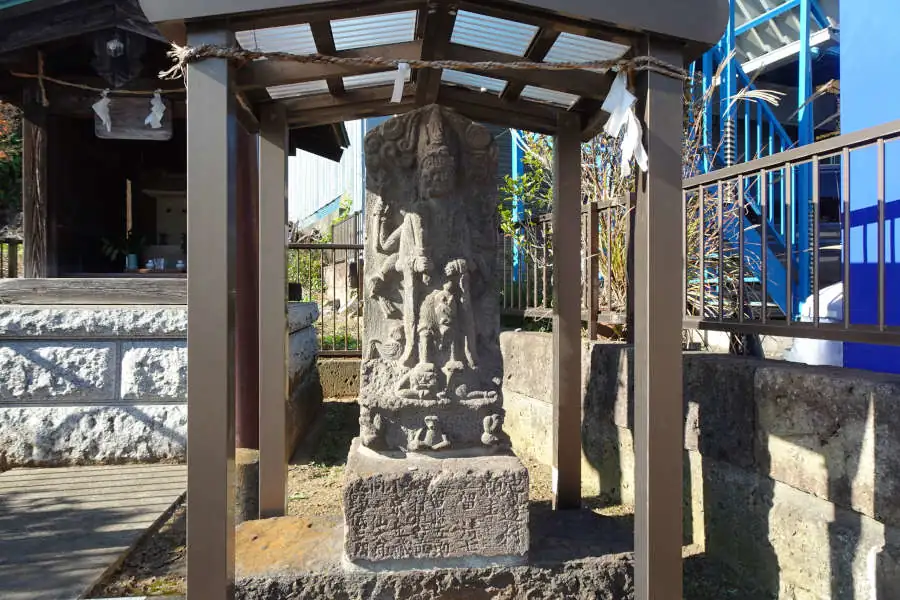 近くにある庚申塚は珍しい不動明王を刻んだものです。仏教系の庚申塚では青面金剛像や三猿、神道系では猿田彦神が祀られています。庚申塔、庚申などの文字を刻んだ庚申塚も多いようです。猿田彦の庚申塚は中部や近畿の一部で多いようです。巣鴨の猿田彦大神庚申堂で見たことがありますが関東ではあまり見たことがありません。