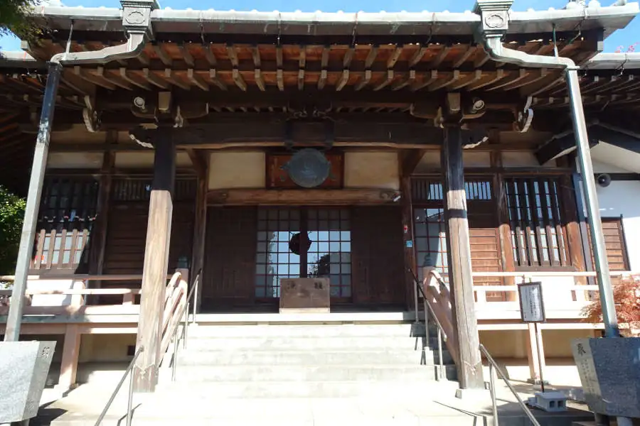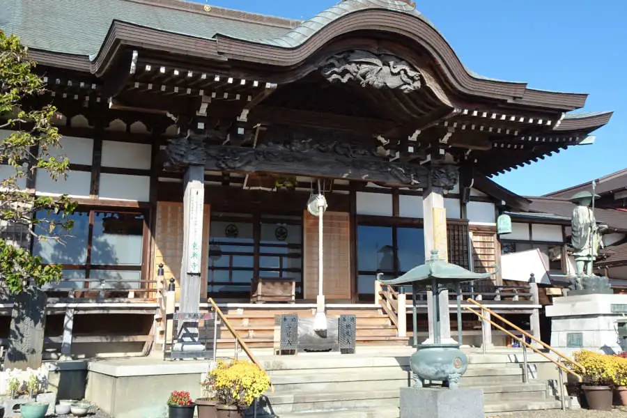 僅かに歩くと高野山真言宗の東漸寺です。関東八十八ヶ所の霊場で赤い奉納幟が参道に棚引いていました。