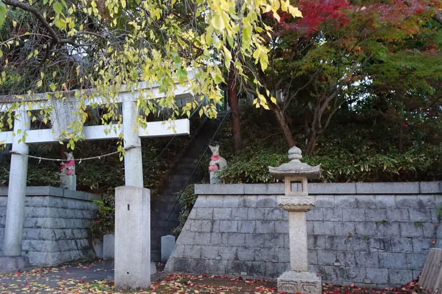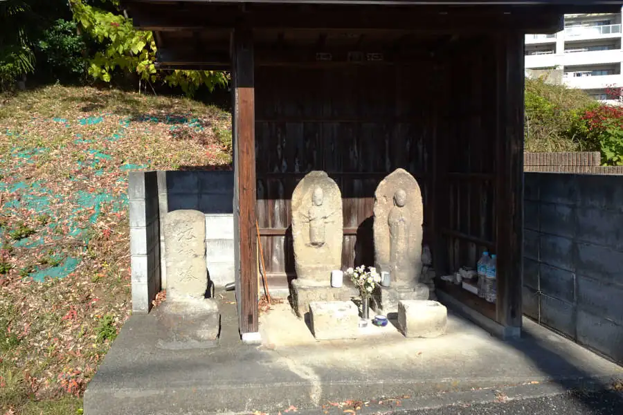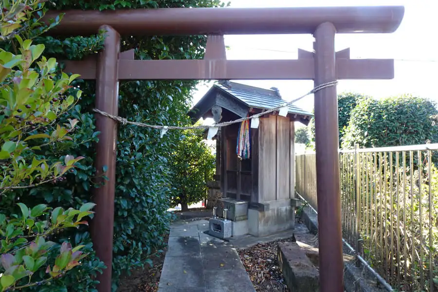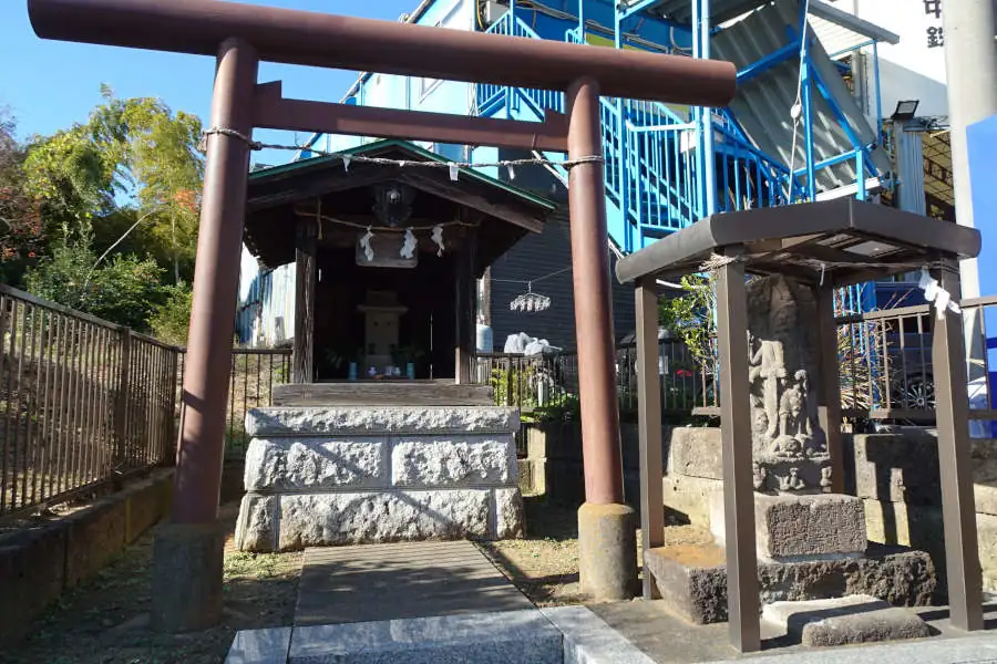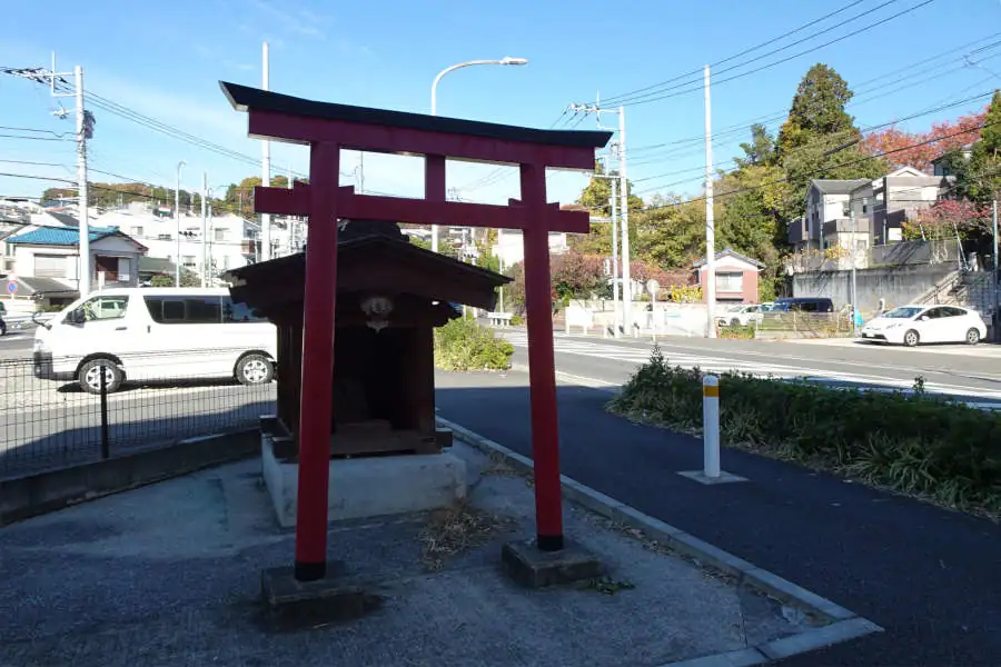 街道沿いには十三夜塔や不動尊の赤いお堂があります。やがて右手の階段を登ると赤い屋根の弁天堂、左手の交差点の先には第六天社が祀られていました。