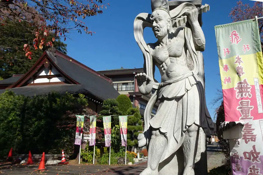 中原街道は地蔵前の交差点を左に、住宅地の中を歩くと大きな仁王像が建つ無量寺です。