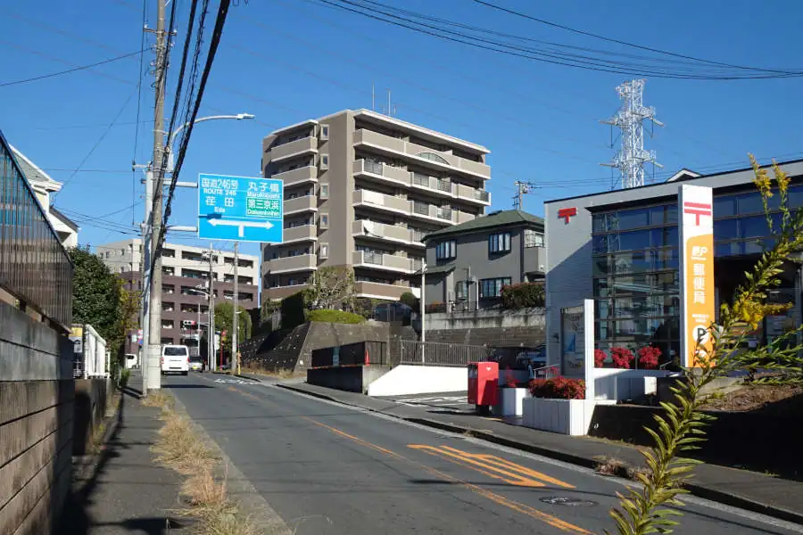 小さく登ると池辺市ヶ尾線、左に向かうと横浜青葉JCTに向かう道のようです。東方町は民家も少なく耕作地が今も残るところのようです。緩やかに登ると仲町台です。ここは地下鉄の仲町台駅周辺に広がるマンション群で、茅ヶ崎城や杉山神社などを訪ねて訪れたところでした。