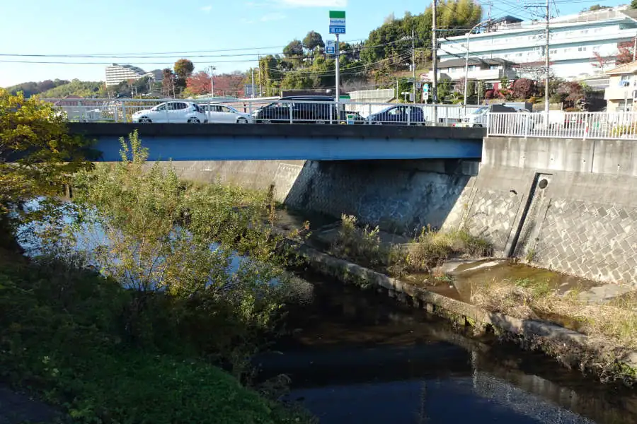中原街道に出会うと程なく鶴見川を渡る落合橋です。この周辺は佐江戸と呼ばれ交通の要衝であった所と言います。