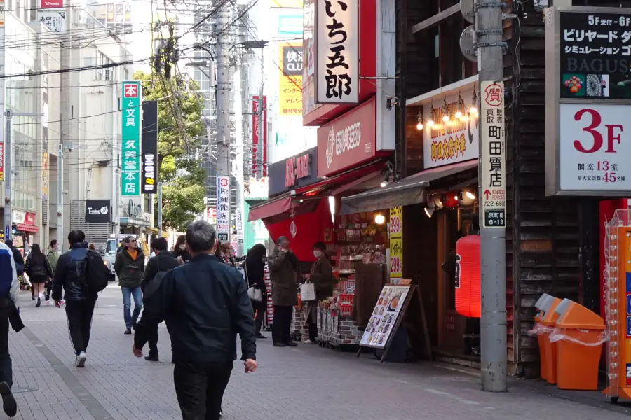町田の駅前には飲食店などが建ち並ぶ繁華街、お昼が近いこともありたくさんの人で賑わっています。