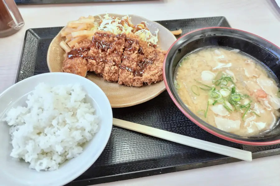 時計はすでにお昼近く、久しぶりに「かつ屋」でお昼ご飯です。近隣の工事関係の人でしょうか、作業着の人が目立つところでした。