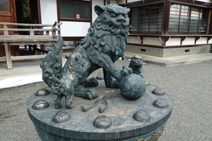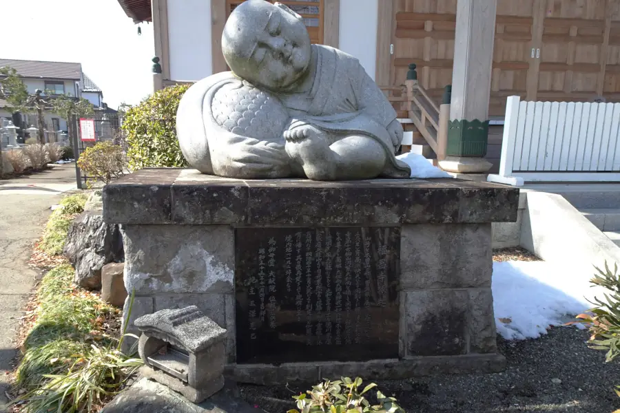 木曽秋葉神社に裏には大きな福昌寺、東側の入り口は雪のためか閉じられているため南側の山門まで大きく回ることになります。拝殿の傍には木魚に頭を乗せた「一休ねむり像」があります。一休禅師は臨済宗の禅僧、「とんちの一休さん」として童話などでも有名です。