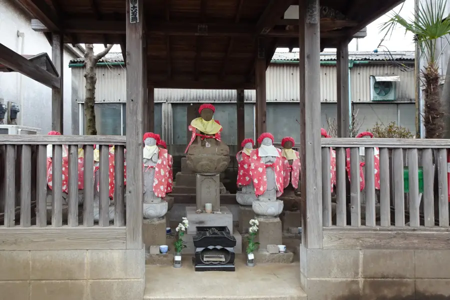 下馬場の交差点を越えるとたくさんのお地蔵さんが祀られた中村地蔵尊です。宝暦6年(1756)創立されと言う古いお地蔵さんを中心として13体のお地蔵さんが祀られています。赤い着物を着たお地蔵さんは風化が進み、最近改修が進んでいると言います。