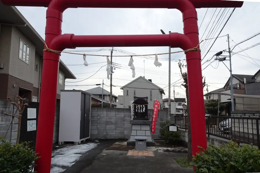 住宅地の中には小さな神明神社や御嶽堂稲荷神社があります。鉄パイプを加工したような赤い鳥居はあまり見かけないもの、境内にある由緒書きでは明治時代にかつて御嶽堂集落にあった稲荷大明神に秋葉大神、大鳥大神が合祀されてとされていました。