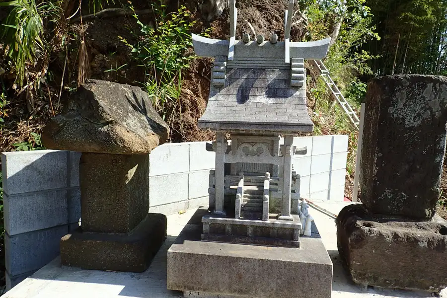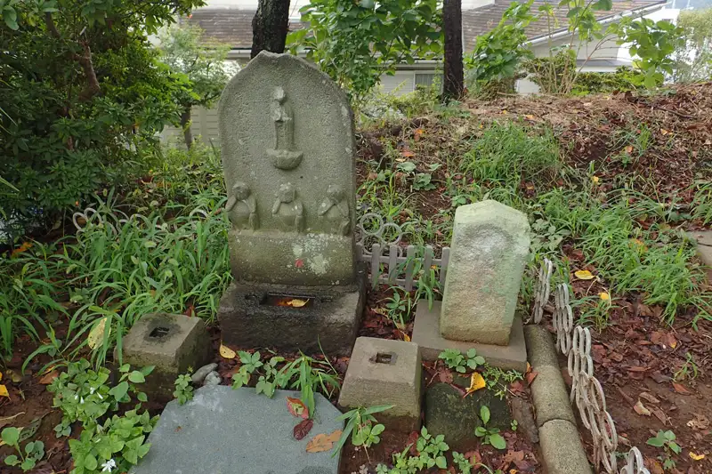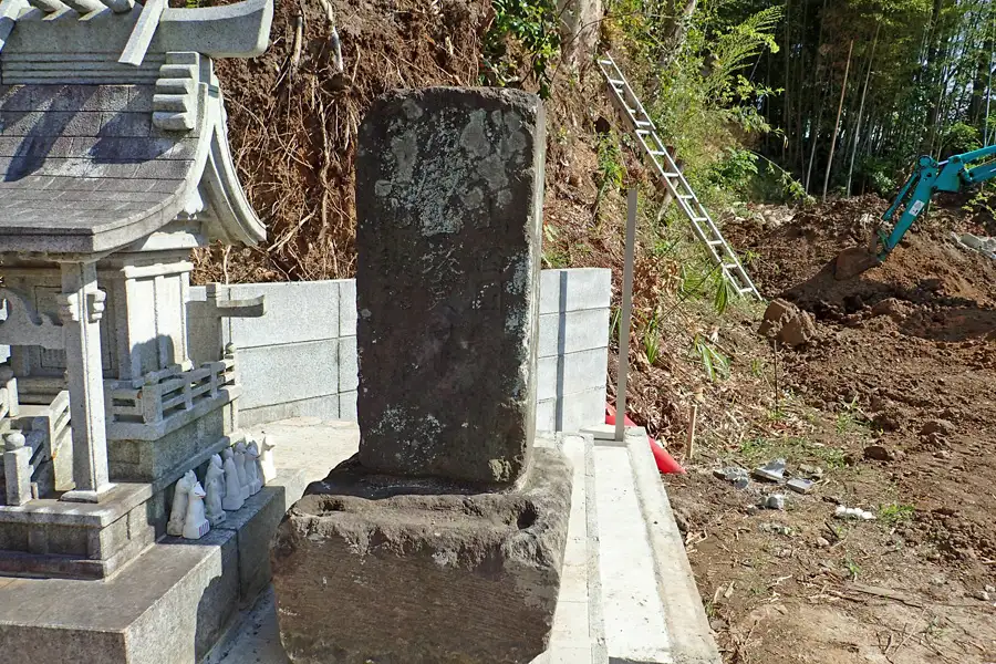 阿久和川近くの住宅地に古い供養塔と石祠が祀られていました。