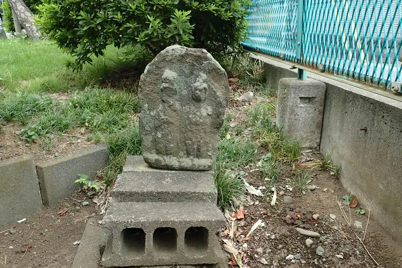 瀬谷柏尾道路近くのフェンスの側に古い双体道祖神が祀られていました。