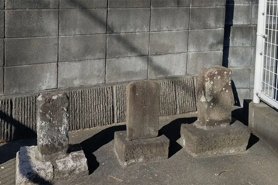 御霊神社の参道にある横浜市指定文化財の庚申塔、隣には大山道と柏尾道の分岐にあったものを移設したという庚申塔がありました。