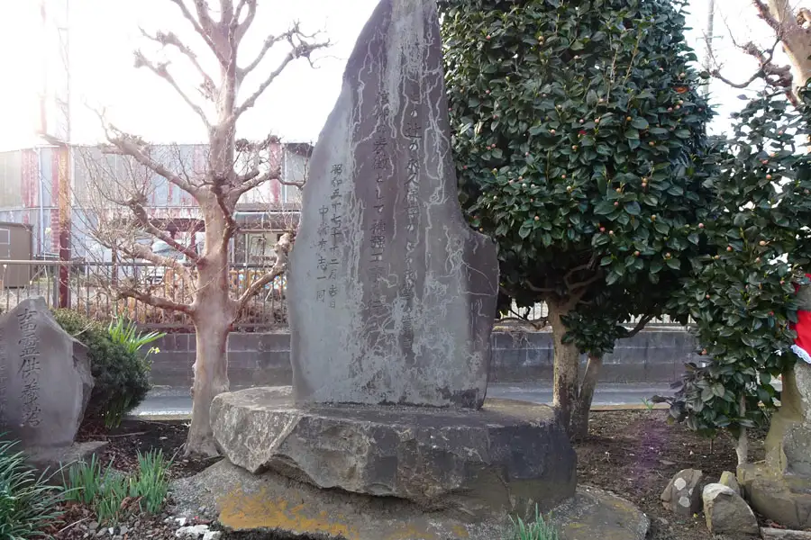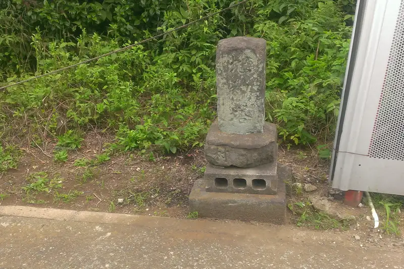 阿久和大久保原公園近くの道端に地神塚があります。風化した礎石には村の文字が見えます。