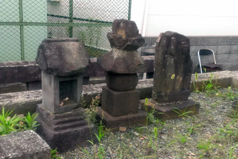 全通院勢至堂の石段に地神塔や庚申塚が祀られています。