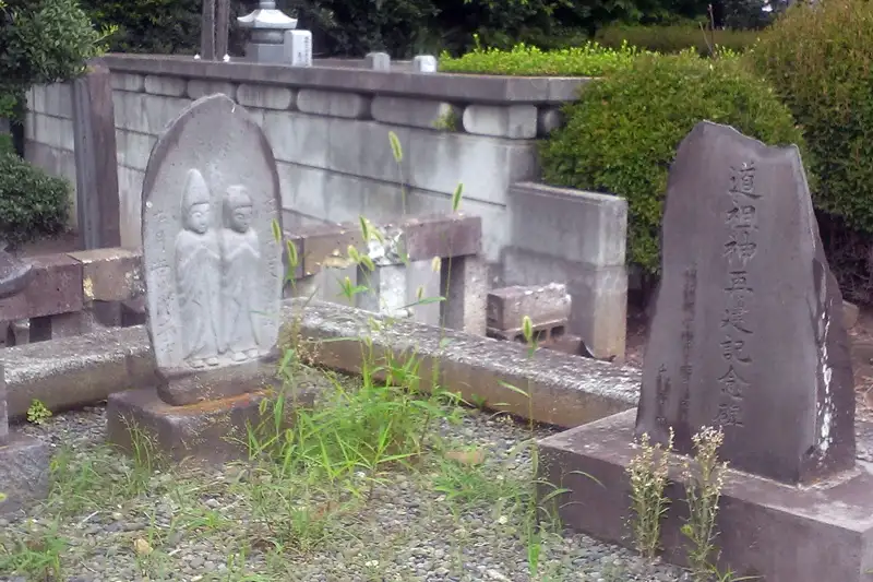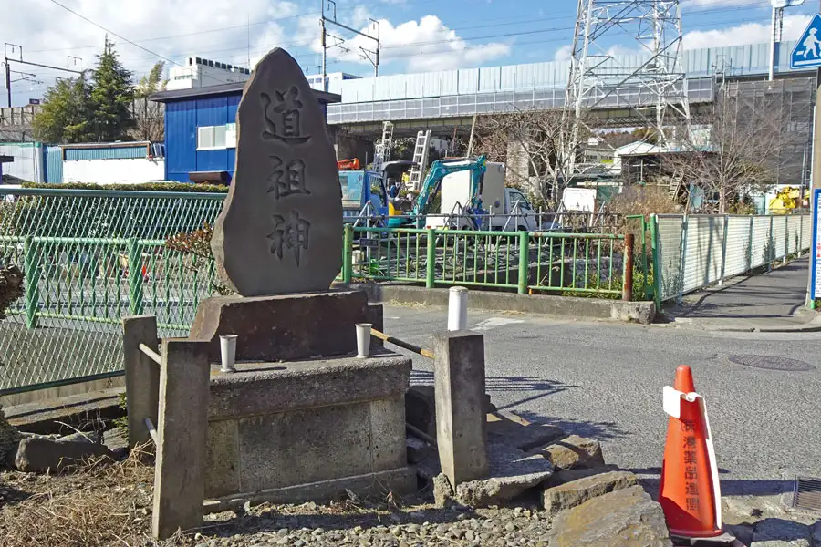 大山道に道祖神が祀られていました。現地の案内板によるとかつて鶴瀬橋手前にあった道祖神を移設したもので、現在の道祖神は安政3年8月と刻印され2代目の道祖神と言います。