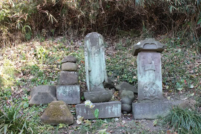 天園から瑞泉寺への道には貝吹地蔵や古い石窟などがあります。ここは鎌倉幕府が滅亡の歴史を今に伝えるところです。