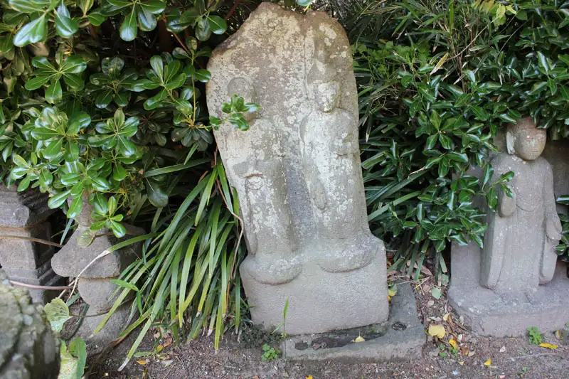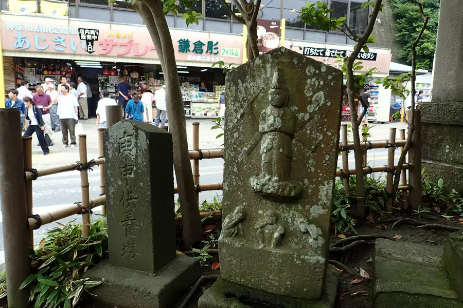 たくさんの人で賑わう鎌倉大仏の傍に庚申塚や石仏が並んでいました。