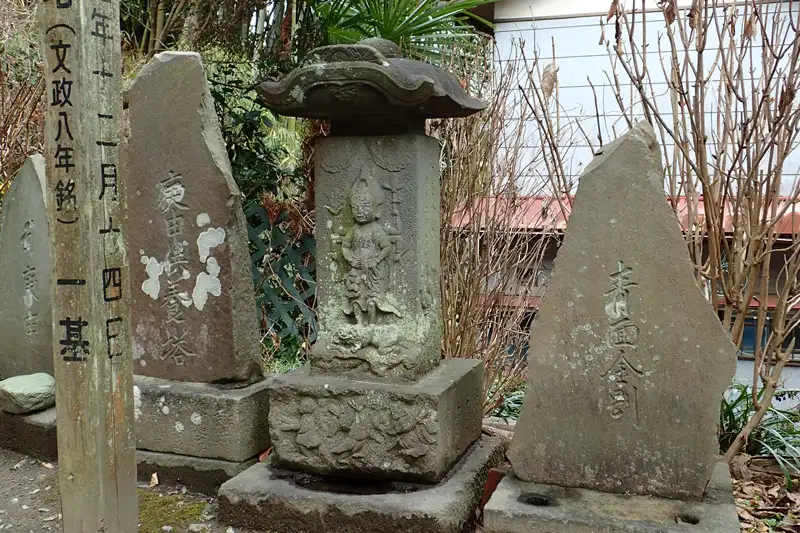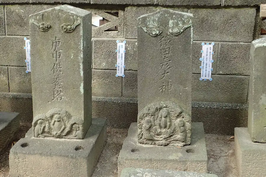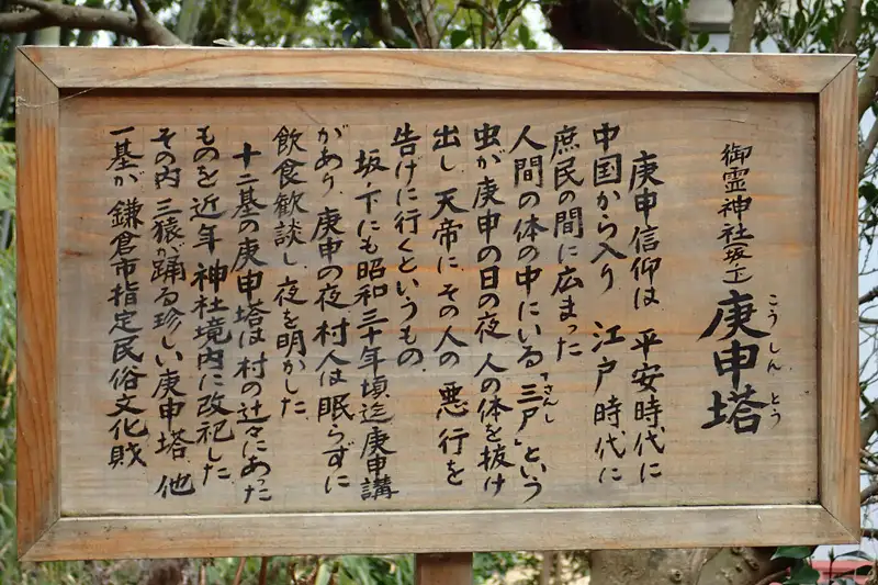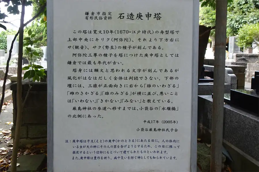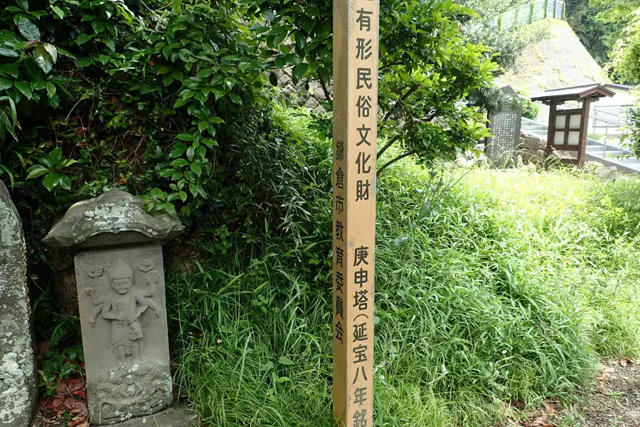 境内にはたくさんの庚申塚があります。鎌倉市の指定文化財や有形民俗文化財になっているものもあります。