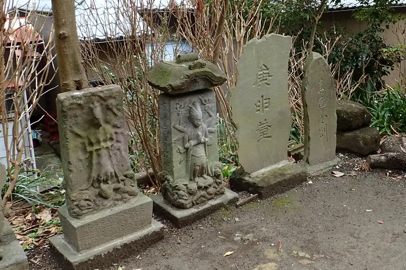 赤い鳥居が建つ荏柄天神社の参道に庚申塚がありました。