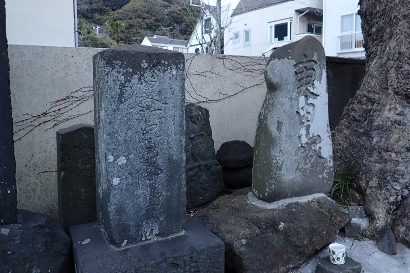 国道134号線沿いに道祖神や第六天の石碑があります。志賀岐船御用船十六人乗仏と刻まれた石碑もありましたが案内板もなく不明です。文字から推測するとこの沖で沈んだ御用船の供養塔なのでしょうか。