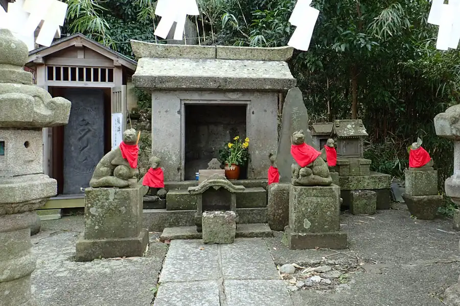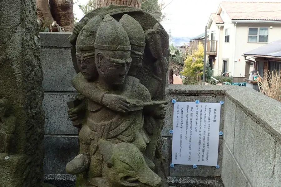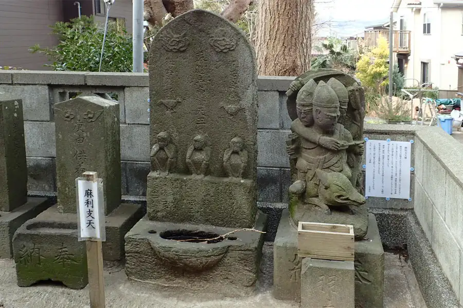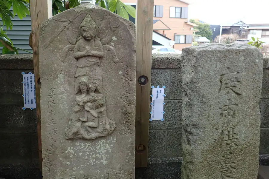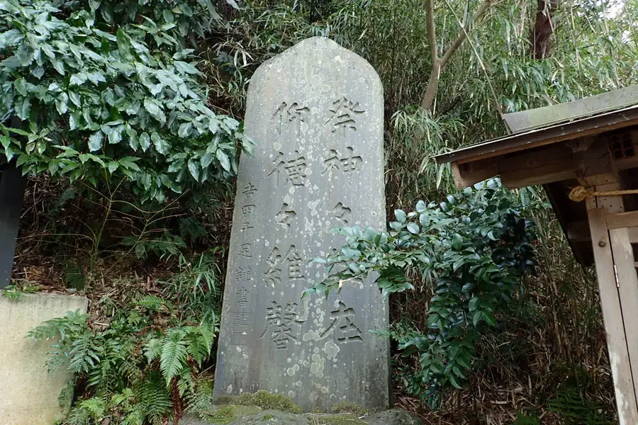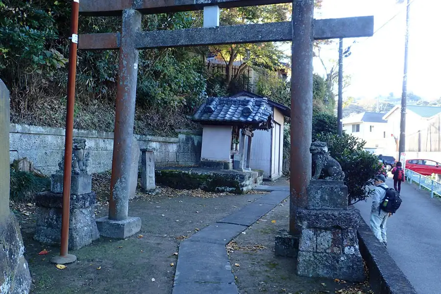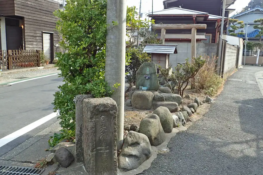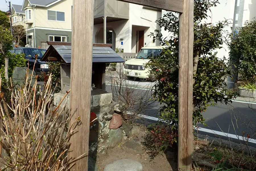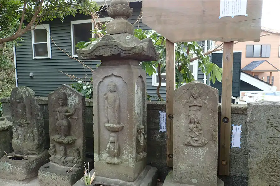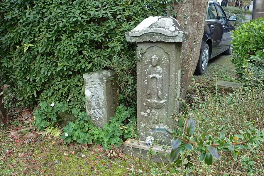 もみじ谷の道端に道祖神が祀られていました。傍には荏柄天神御旅所の標識は立っていました。