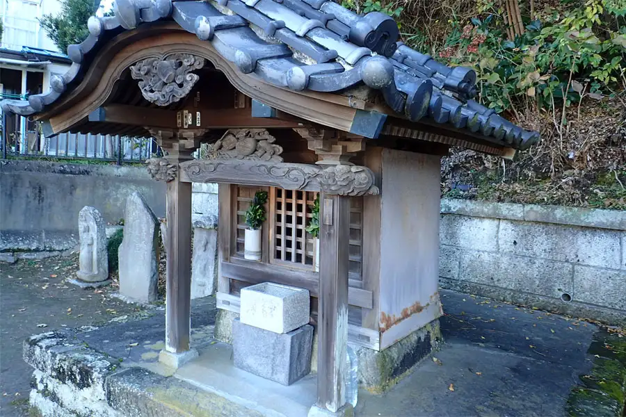 安国論寺に近くに小さな石祠が祀られています。大黒天が祀られた大国堂と言われ、付近には古い石仏や庚申塚なども祀られていました。