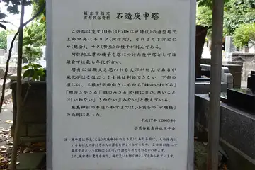 成福寺の側に庚申塔があります。現地の案内板いよると寛文10年(1670年)の舟形塔で、阿弥陀三尊の種子を付けたものとしては鎌倉で最も古いものと言います。