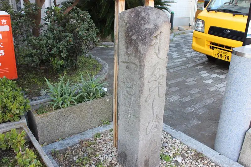藤沢市役所へ向かう歩道の植え込みに江の島弁財天道標があります。杉山和一(検校)が、江島神社に参詣する人々のために建てたと言われる道標です。