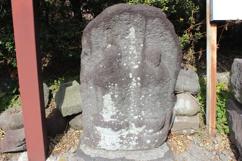 吾妻山公園から下って来た釜野隧道の出口近くに風化が激しい道祖神がありました。