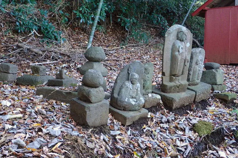 関東ふれあいの道の傍らに朽ちかけた蔵王神社があります。この境内にはたくさんの石仏が祀られていました。