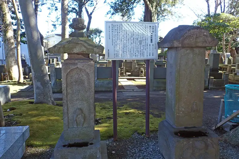 二ツ家稲荷神社の境内に庚申塚があります。寛文10年(1670年)と刻まれた庚申塔は藤沢市の重要文化財に指定されています。