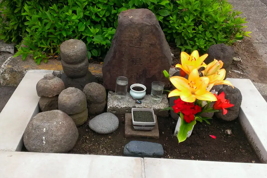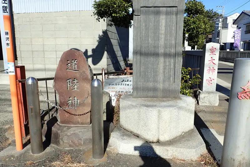 皇大神宮の石鳥居の横に道陸神の石碑があります。道陸神は道祖神の別称で道路の悪霊を防いで旅人を守護する神です。