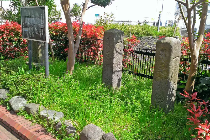 国道1号線沿いに湘南発祥の碑があります。大磯の鴫立庵(しぎたつあん)近くにある石碑の裏に「著盡梨湘南清絶地」と書かれていることから湘南発祥の地とさえています。
