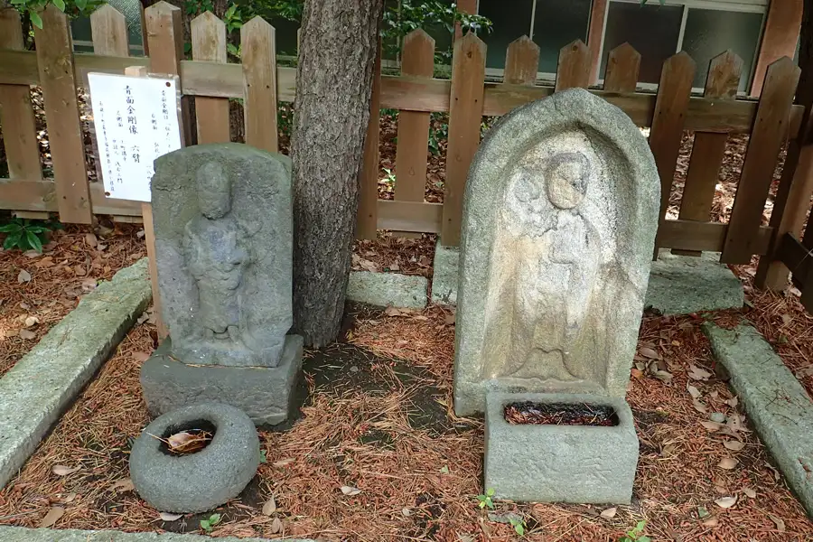 大六天神社の境内には青面金剛の庚申塚や道祖神が祀られています。首が落ちてしまった六地蔵も祀られていました。