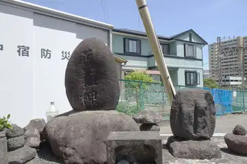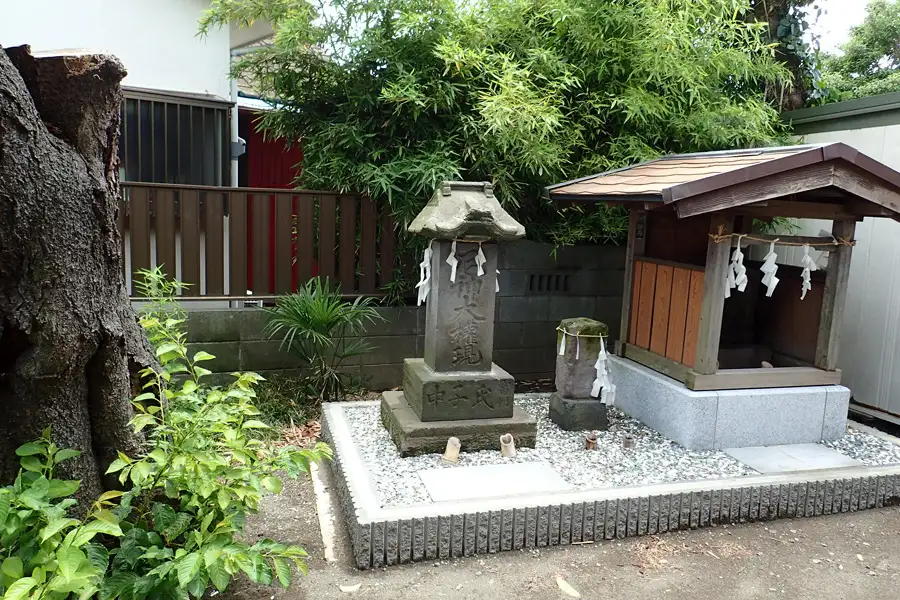鵠沼明神5丁目の道路沿いにある稲荷神社に古い石碑とともに道祖神や庚申塚がありました。