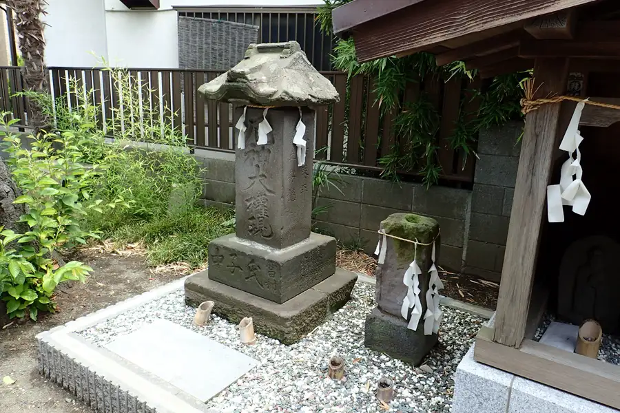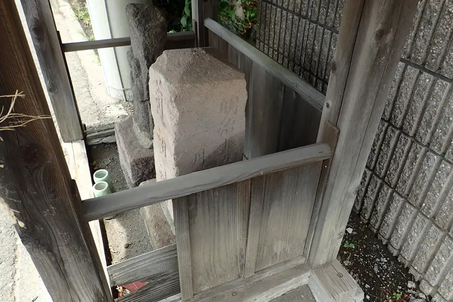 明神大神の境内に道祖神が祀られています。厄神大権現と刻まれた石塔はあまり見かけないものです。