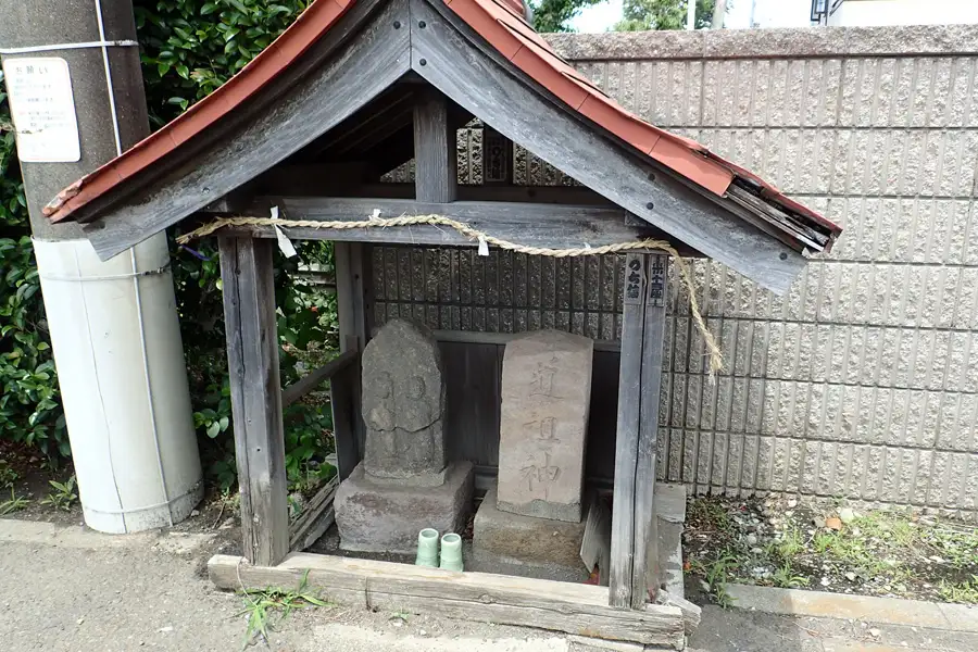 道端に古い道祖神を祀った祠があります。