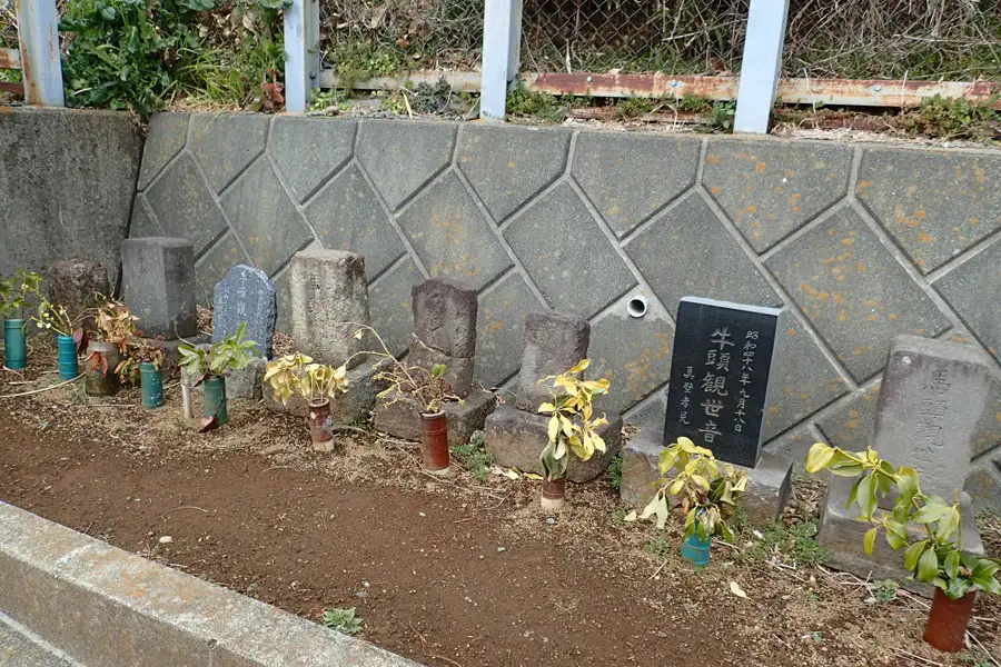 付近は工場などの誘致が行われ道路も付け替えられているところです。道端に馬頭観音や牛頭観音などの古い石仏が祀られていました。