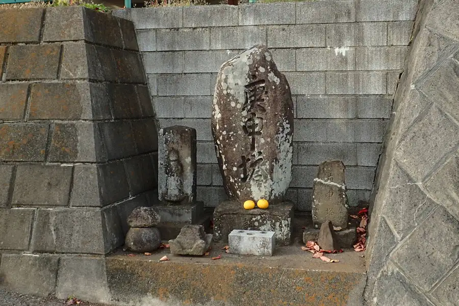 七沢の舗装道路沿いに古い石仏が祀られていました。風化が進んで石面は判り難い状態です。