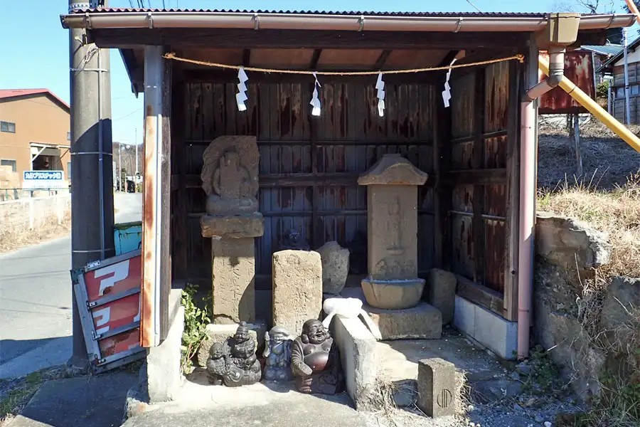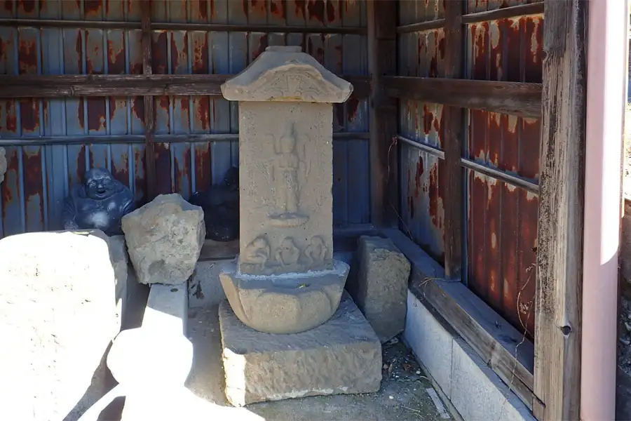 半蔵坊近くの道端に庚申塔が祀られた小さなお堂があります。庚申塔のほか百番供養塔も祀られていました。