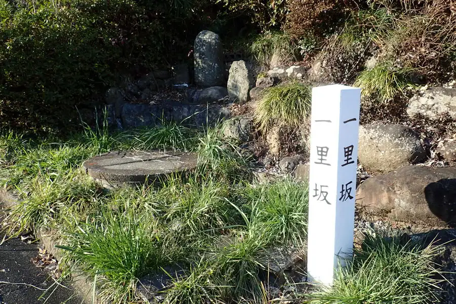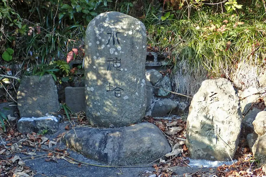 半原へと下っている坂は一里坂、道端に水神塔の石碑が祀られています。