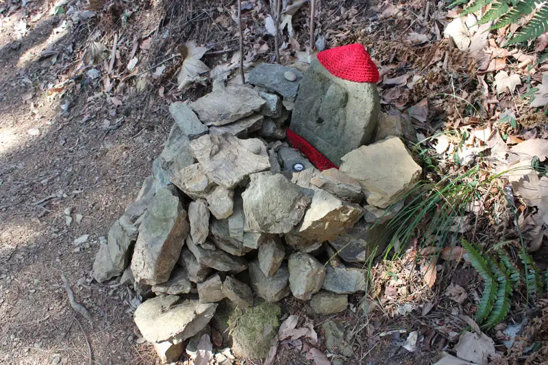 高尾山のハイキングコースを外れ大垂水峠へと向かう登山道に石仏があります。ハイキングコースの途中と言うこともありたくさんの石積みがされていました。