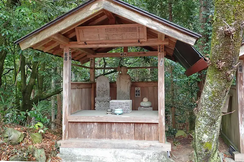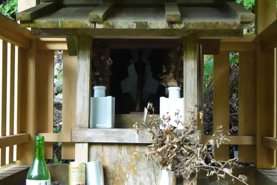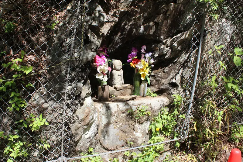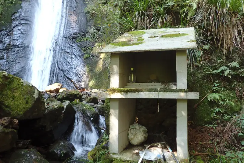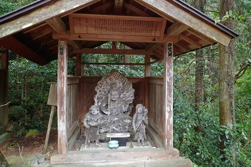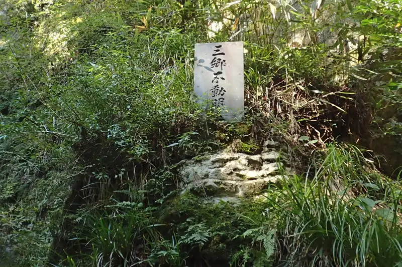千足からつづら岩に登って行く途中には綾滝があります。滝の側には三郷不動明王の祠がありましたがあいにく不動明王はお留守のようでした。