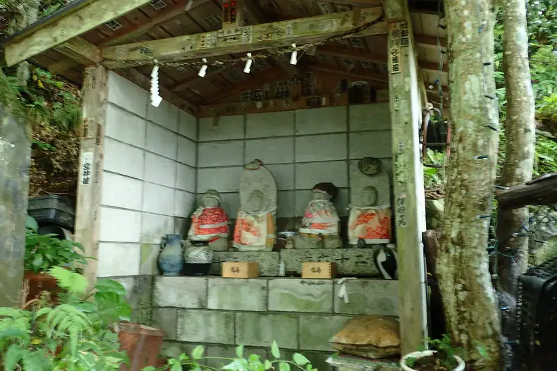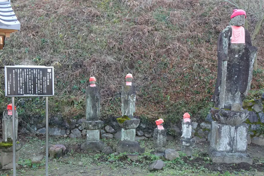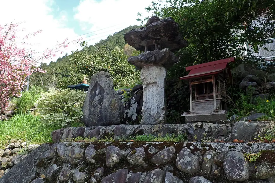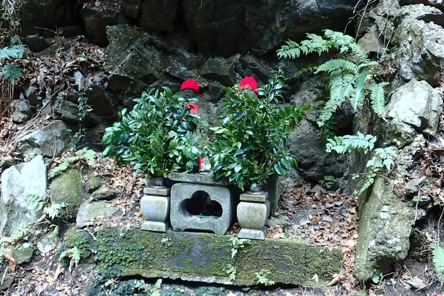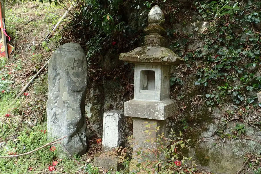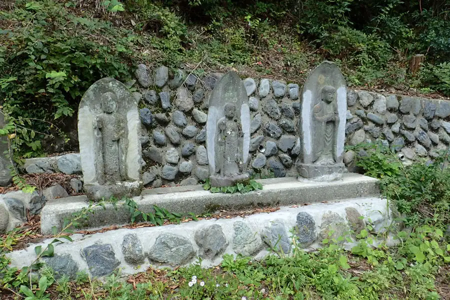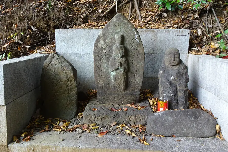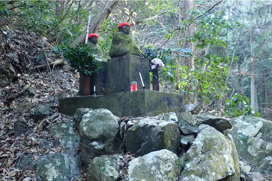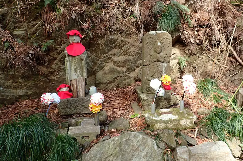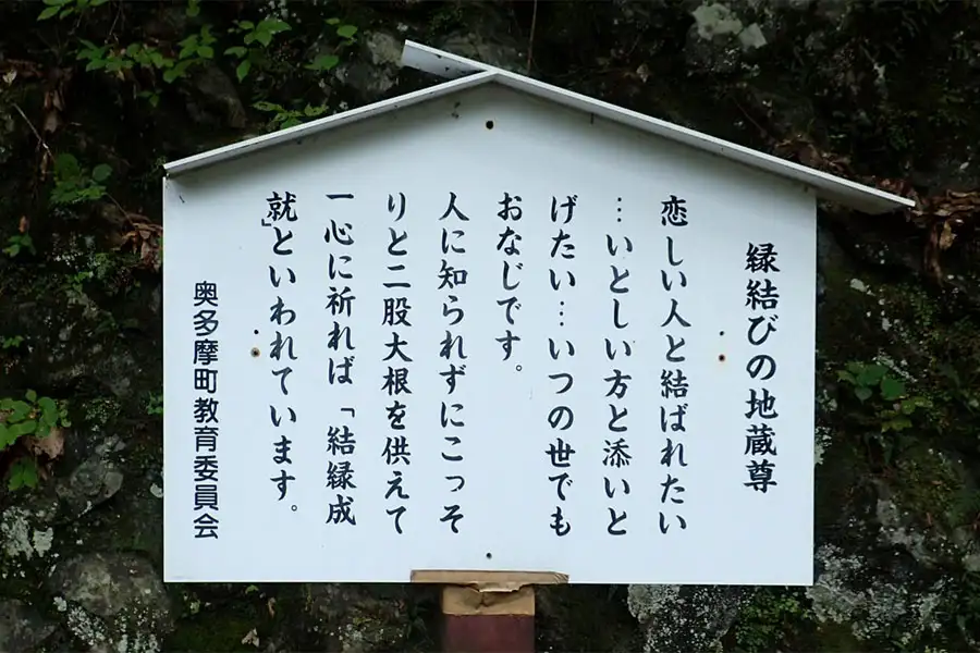 奥多摩むかし道の斜面に縁結び地蔵と馬頭観音が祀られています。現地の案内板によると「人知れずにこっそりと二股大根を供え一心に祈れば決願成就と・・」と紹介されていました。