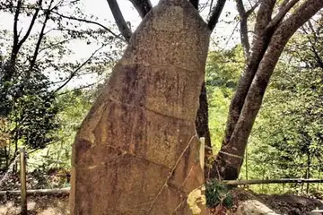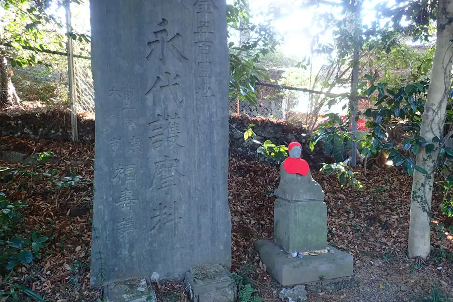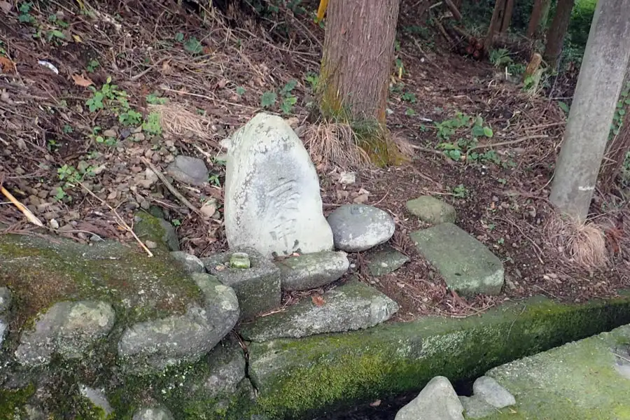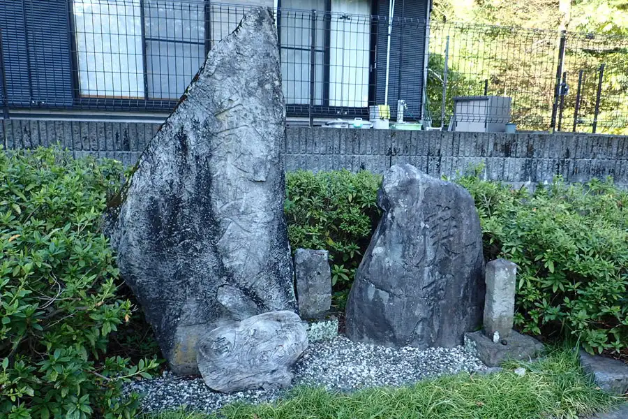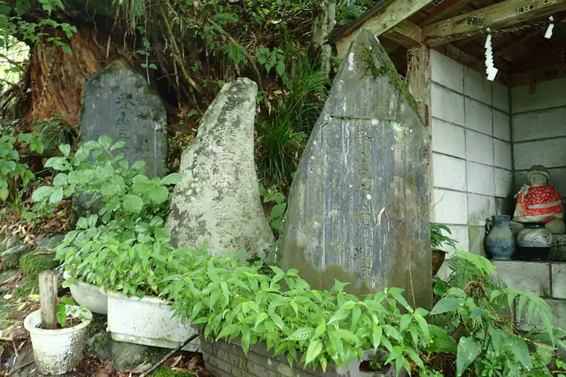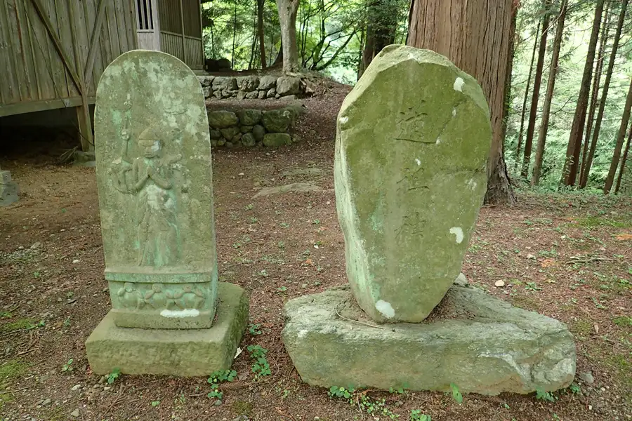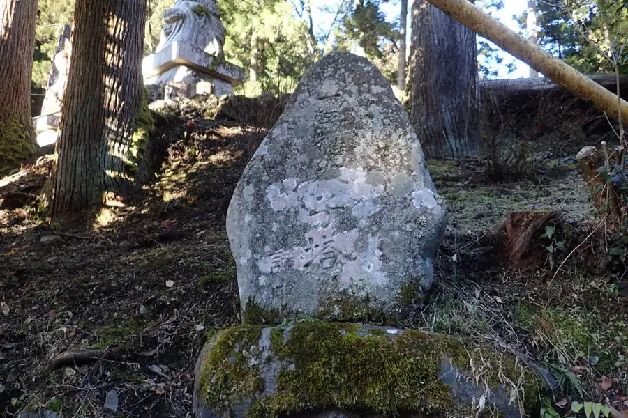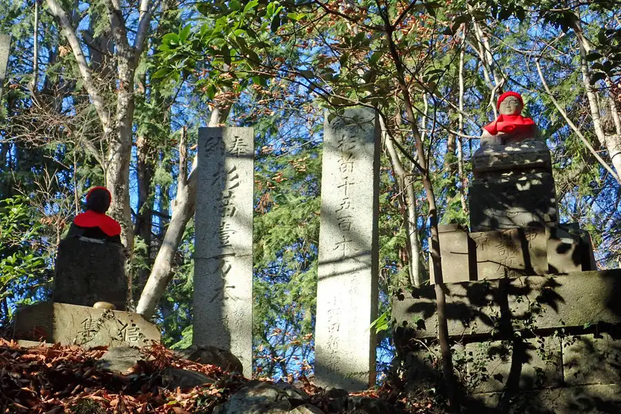 御岳山の神代ケヤキの近くに古いお地蔵さんと石碑があります。