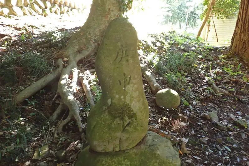 穴澤天神社の暗い境内に道祖神と庚申塚があります。