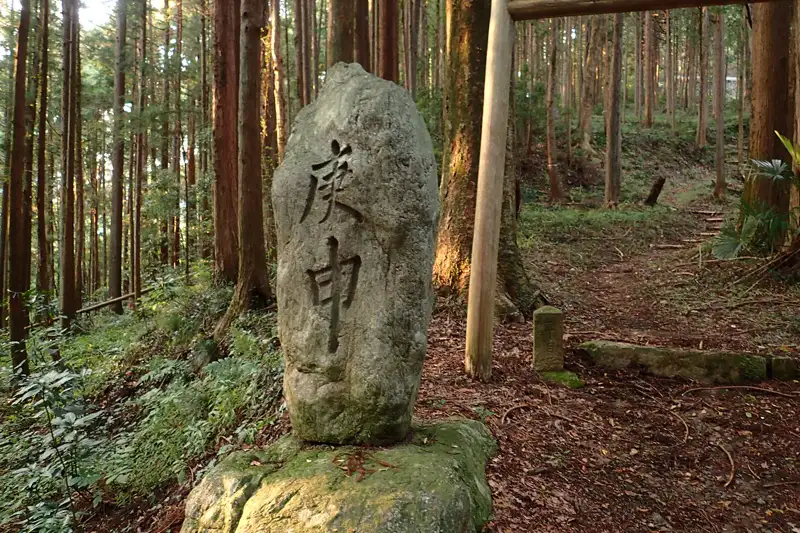 檜原白倉から大岳山へと登る山道は大岳山神社への表参道です。一丁目の鳥居の側に自然石の庚申塚がありました。