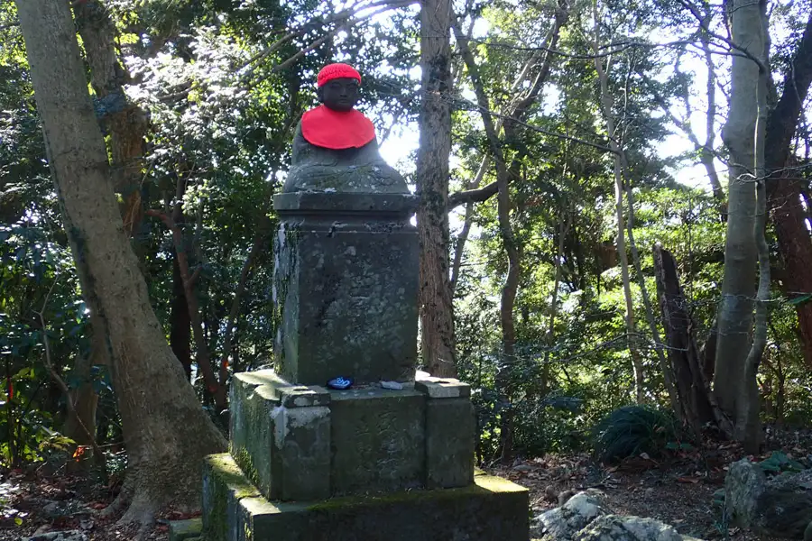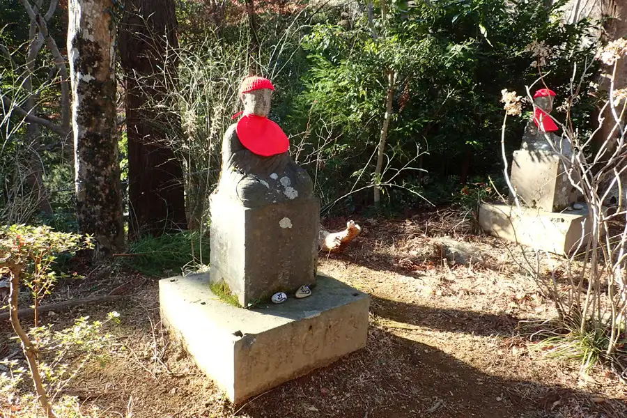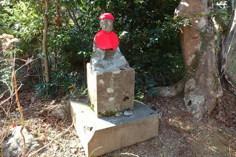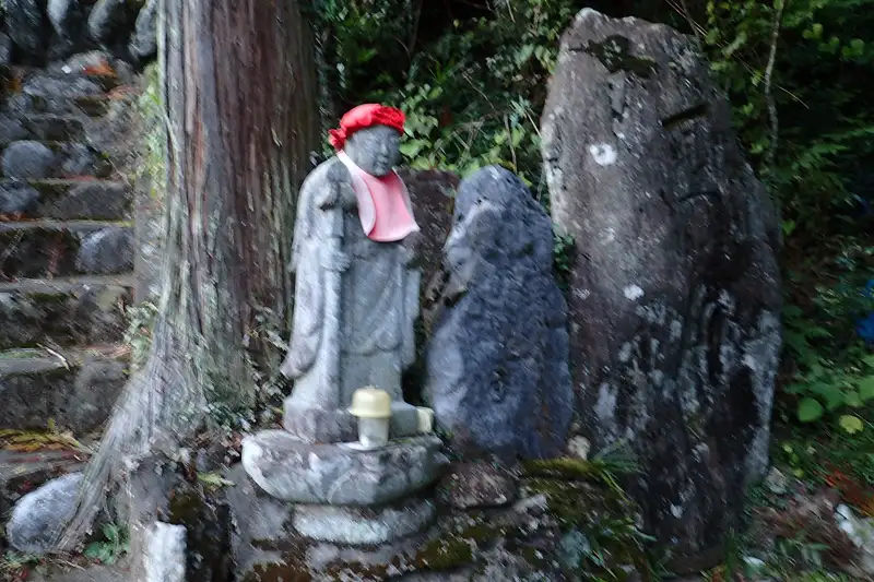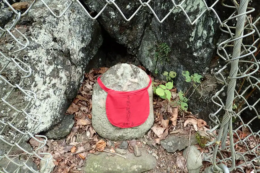 白倉から大岳山へと登る山道は大岳山神社への表参道です。林道との分岐の上に赤い涎掛けをかけたお地蔵さんが祀られています。