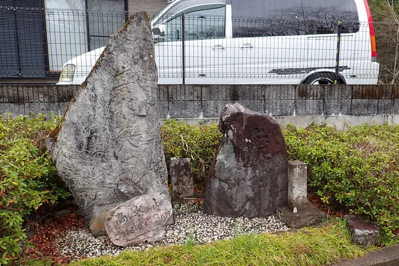 軍畑駅から榎峠へと登って行く道路沿いに高水山入り口の石碑と庚申塔があります。