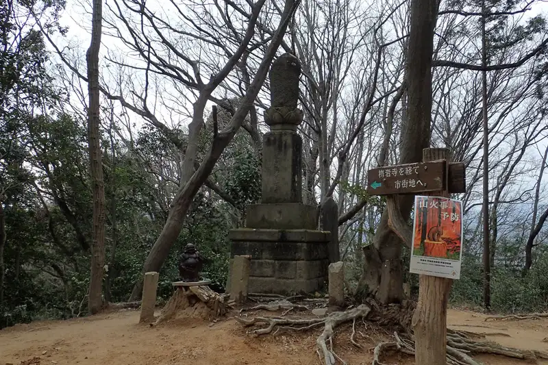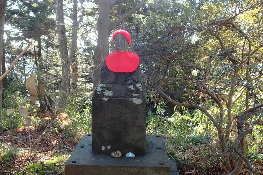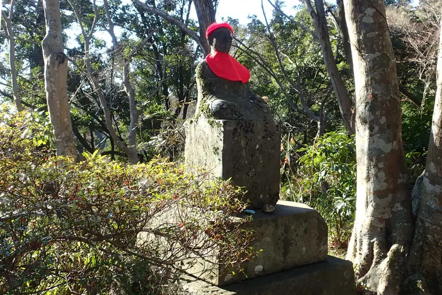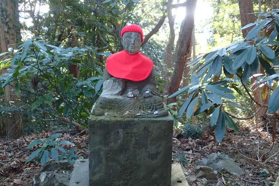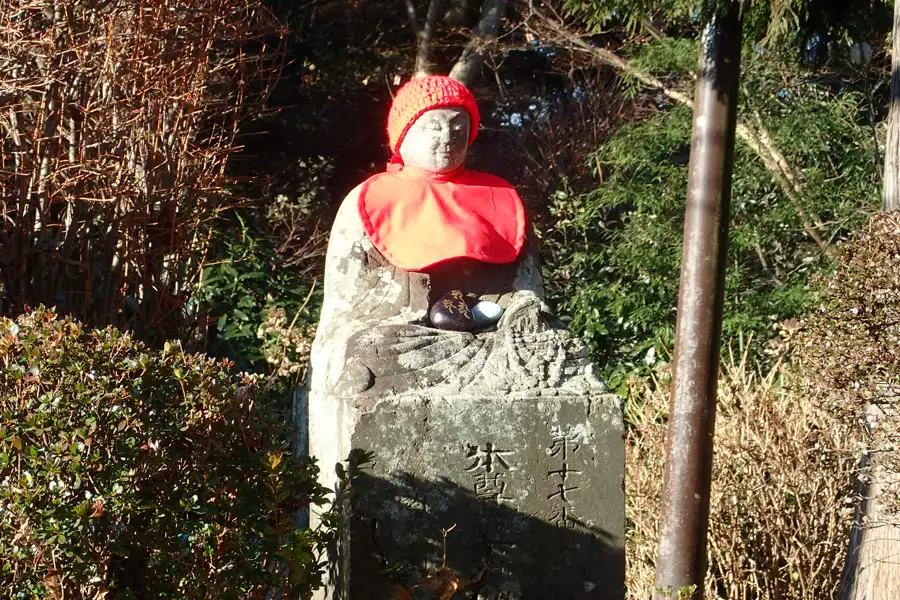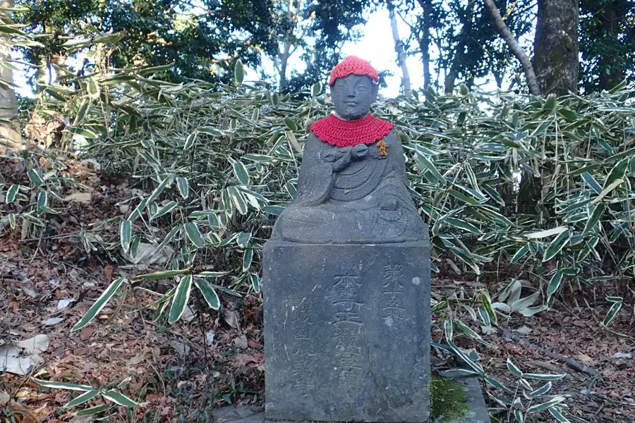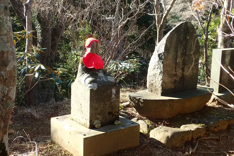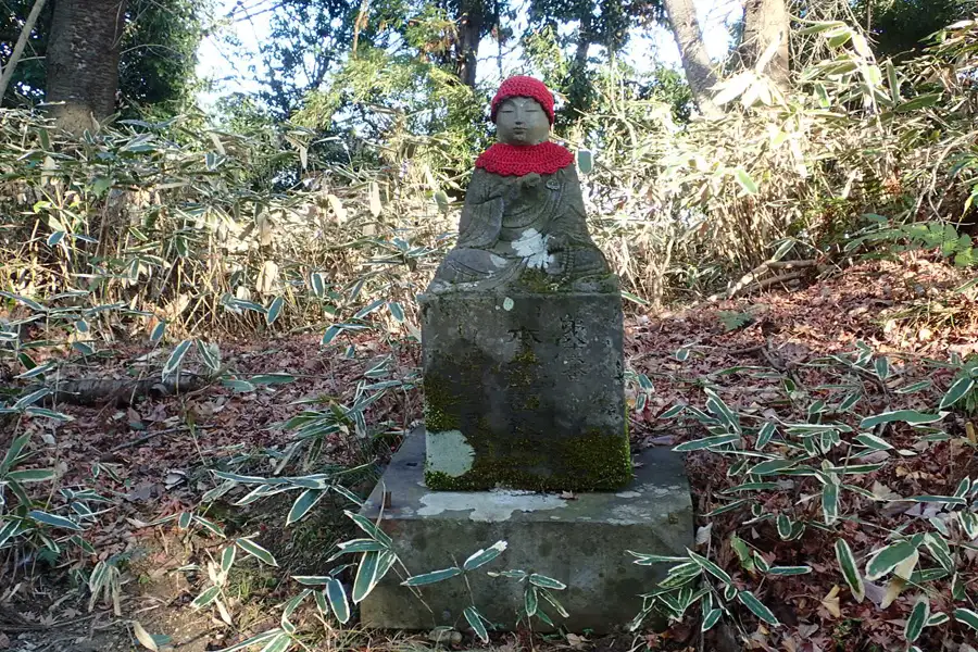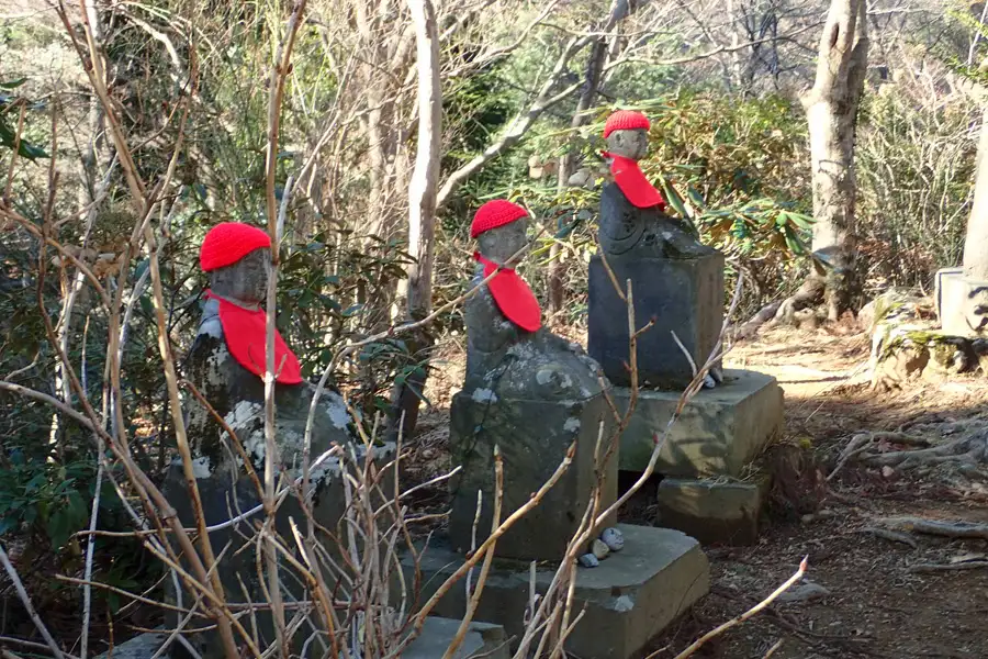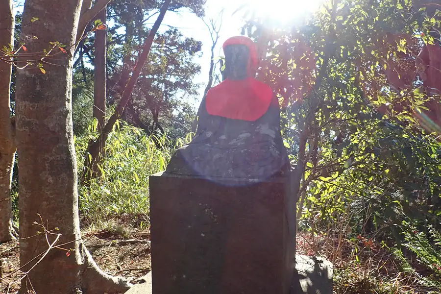 高尾山南稜は寒い時期のハイキングに最適のコースです。縦走路から僅かに外れた中沢山の山頂に薬師観音の石像がありました。