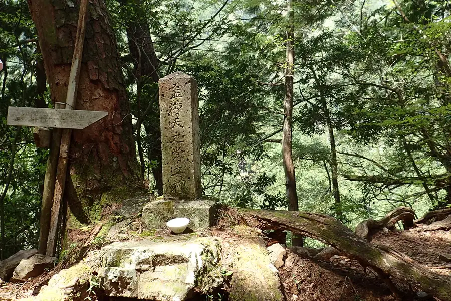 馬頭刈尾根の分岐に猿田彦大神の石碑と祠があります。鋸山と大岳山荘の分岐点です。