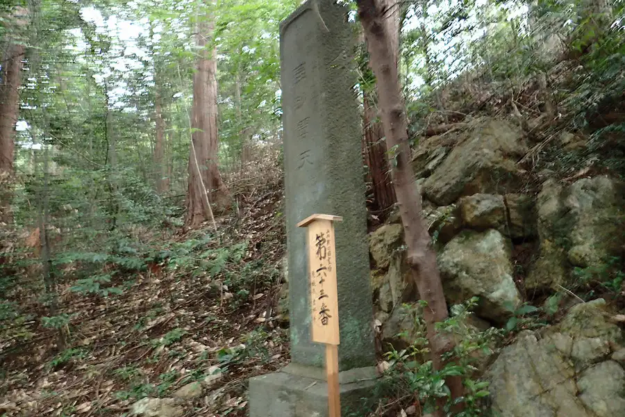 青梅丘陵ハイキングコースの梅岩寺分岐に石碑があります。西国27番播磨書写寺本尊如意輪観音、西国23番摂津国勝尾寺本尊千手観音、摂津国阿○○本尊十一面観音の文字が刻まれているので西国巡礼供養塔なのでしょう。